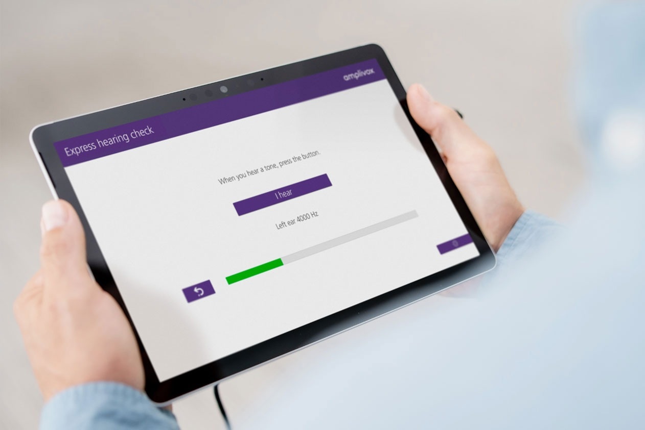 Tests can be finished without supervision in less than four minutes, thanks to clear, easy-to-follow, on-screen instructions. After the test, the system will identify any issues related to hearing loss and indicate what needs to be done next.