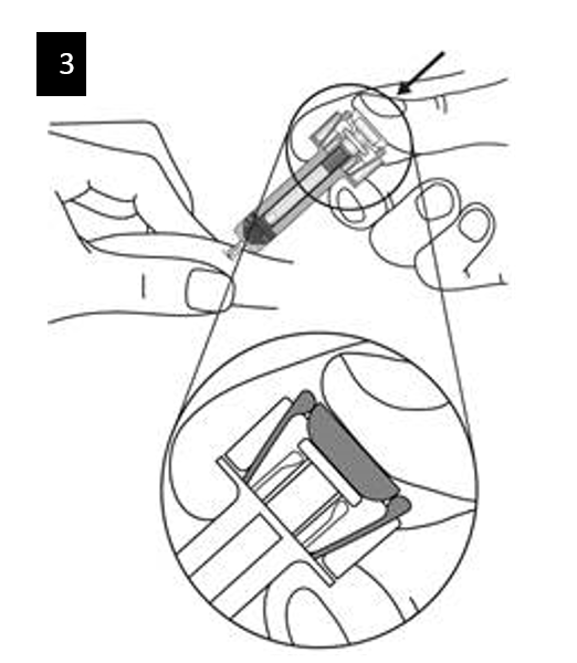 Do not touch or push the needle guard as you could get injured. Touching or pushing on the needle guard could cause a needlestick injury.