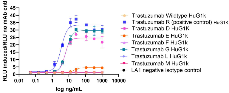 - ADCC/ADCP reporter assays: Surrogate assays to investigate Fc mutants effect on ADCC/ADCP activity using a luciferase signal.