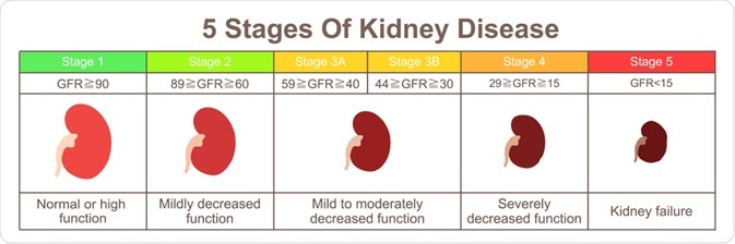 • Stage 5 (G5): Severely decreased eGFR (<15). This stage of CKD is often referred to as renal failure.