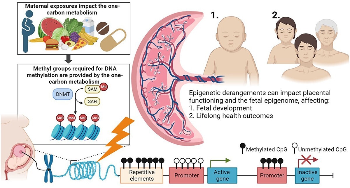 4. van Vliet, M. M., Schoenmakers, S., Gribnau, J., & Steegers-Theunissen, R. P. M. (2024). The one-carbon metabolism as an underlying pathway for placental DNA methylation – a systematic review. Epigenetics 19(1). DOI:10.1080/15592294.2024.2318516, https://www.tandfonline.com/doi/full/10.1080/15592294.2024.2318516.
