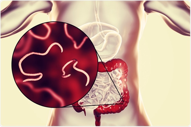 Threadworm is a very common infection that occurs when tiny, thread-like worms infest the human intestine. The worms, which are between 2 and 13 millimeters (mm) long and resemble a piece of white thread, are also sometimes referred to as pinworms. Female worms are longer than male worms, measuring at least 1 centimeter (cm) and having a diameter of just under 1 mm.