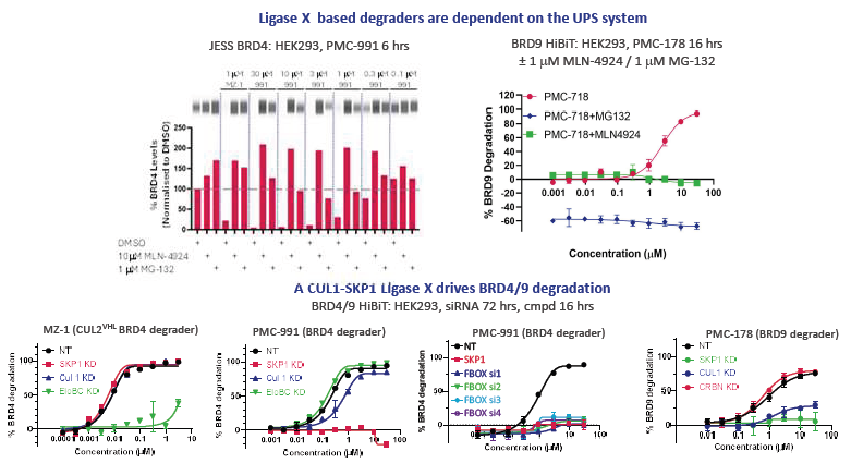 We demonstrate that Ligase X, which functions through the CUL1/SKP1 SCF complex, can be hijacked to degrade various oncology targets, such as BRD4, both in cells and in vivo.