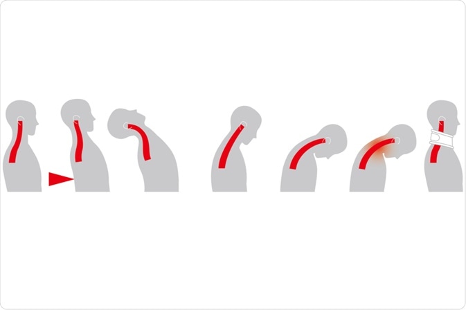 Hyperextension spinal injuries are often due to trauma to the front of the head or whiplash injury. Comparatively, extension-rotation spinal injuries occur when both the anterior and posterior spinal columns are disrupted, which can typically arise in diving injuries. The final type of spinal injury is described as lateral flexion and is often seen along with flexion or extension injuries.