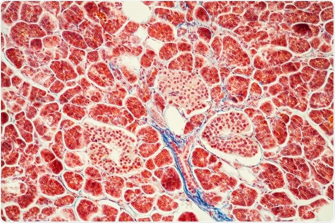 In a part of the pancreas called the islets of Langerhans, the precursor, proglucagon, is cleaved in specialized cells called the alpha cells by an enzyme called prohormone convertase 2 to become glucagon. In the nerve cells of the brain stem and in the intestinal cells, proglucagon is processed by prohormone convertase 1 to produce glucagon-like peptides 1 and 2, as well as other peptides. These peptides link to G-protein coupled receptors which have distinct responses.