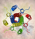 When the scientists solved the crystal structure of the P protein, they found that it forms a tetramer, with four proteins that join to form a single unit.
