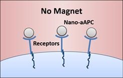Applying a magnetic field caused the nano-aAPCs—and their receptors—to cluster together, leading to T cell stimulation. Credit: Karlo Perica