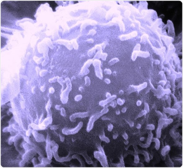 Electron microscopic image of a single human lymphocyte.