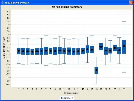 The aneuploidy summary plot allows rapid identification of whole chromosome gains and losses.