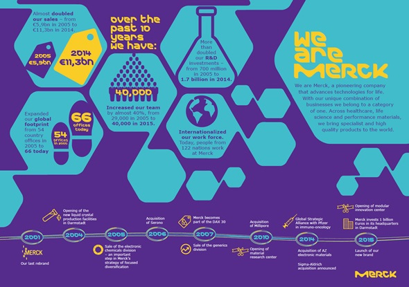 In its brand repositioning efforts, Merck was supported by FutureBrand, a leading brand agency that advises Bentley and Nespresso, among others, and also worked on the 2012 Olympic Games in London.