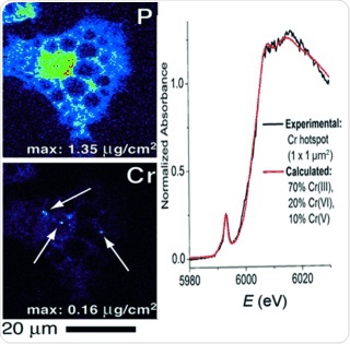 By carrying out XFM analysis, Lay and his colleagues found that the chromium was confined in "hotspots", and the µ-XANES data revealed that these hotspots did not only contain chromium(III). The authors conclude: "This finding unambiguously confirmed the presence of high oxidation states of chromium." After having established the presence of higher oxidation states, the scientists also modelled the possible chromium compounds and identified chromium(V) and chromium(VI) compounds.