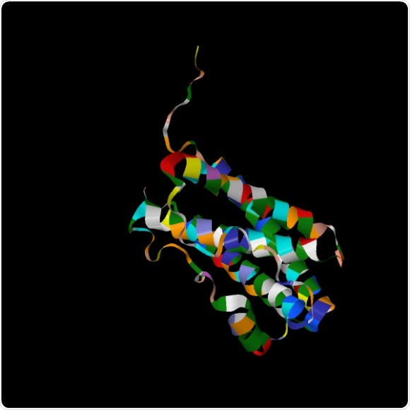Granulocyte colony-stimulating factor (GCSF), a protein consisting of about 175 amino acids (colors), stimulates the bone marrow to produce neutrophils, a type of white blood cell. Filgrastim is the recombinant DNA analog of GCSF. It is used to ward off infection and anemia in cancer patients. Credit: Protein Data Bank