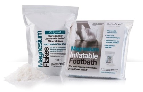 Magnesium Flakes are available from Harrods, Fortnum & Mason, Liberty London, Holland & Barrett, Space NK, independent retailers across the UK RRP £9.95 (1Kg) and inflatable footbaths are available from independent retailers RRP £9.95.