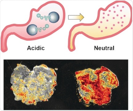 To make the motors, 20 µm magnesium spheres are coated with a nanolayer of gold and then a pH sensitive polymer into which the drug is embedded. Because the spheres lie on a glass support during the coating process, a small spot on the magnesium core remains uncoated. At this spot, an electrochemical reaction occurs, consuming protons and forming magnesium ions and releasing tiny bubbles of hydrogen gas. The bubbles propel the motors. This motion results in effective mixing of the liquid. This causes the reaction to proceed rapidly. Less than 20 minutes after administering the motors, the stomach environment reaches a neutral pH value. Once this is reached, the polymer dissolves and releases the payload. In addition, the propulsion increases penetration of the microtransporter into the gastric mucosa, which increases the amount of time that the drug is retained in the stomach. The micromotors are biocompatible and safe to use in the stomach. Stomach function is not affected and the normal pH value is re-established within 24 hours.