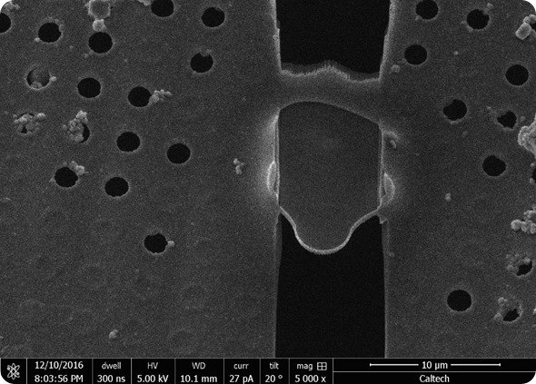 Cryo Focused Ion Beam milling (cryo FIB milling) is a cutting-edge method for thinning vitrified biological samples that allows access to intracellular regions of thick specimens (> 1 um) with unprecedented ease and structural preservation. It provides the ability to move beyond imaging only small bacterial cells with electron cryotomography (ECT) and will allow the exploration of eukaryotic cells, tissues and microbial biofilms to the same molecular resolution that the group has achieved with individual bacterial cells for the past decade.