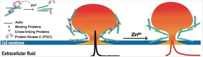 Zinc changes the dynamics of the release. Before and after the opening of the vesicle a pore forms at the point of contact with the plasma membrane. After treatment with zinc, the pore closes more slowly than usual. The vesicle thus stays open longer and releases 92 % of its transmitter molecules to the outside—instead of only 66 % without the zinc.