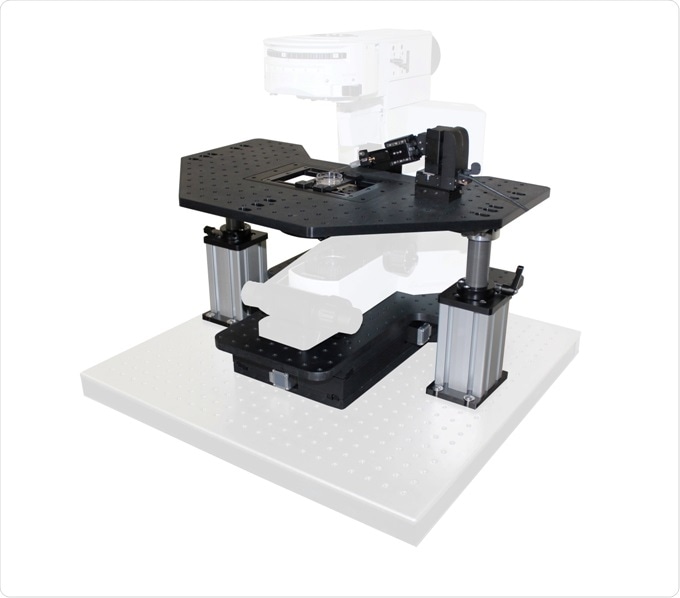The V-Deck is designed to be used on conjunction with the recently released Prior Scientific Translation stage. The Translation stage allows an entire microscope to be quickly yet precisely moved, allowing your sample to remain immobile - essential for precision electrophysiology and neuroscience experiments where it is vital for the sample to stay completely still and as vibration free as possible.