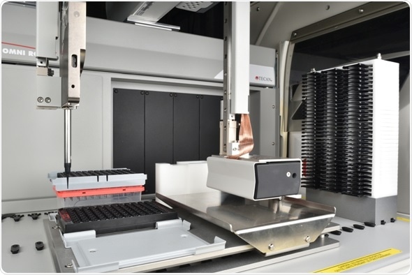 The new station automates a series of time-consuming and repetitive liquid handling and sample processing steps that are required when analyzing multiple protein samples. The automated system, which is based around a Tecan Cavro Omni Flex liquid-handling robot, is programed to sample a protein solution into a disposable chip before transferring it into a reader. The robot then waits for the analysis to complete before returning the chip to its original location.