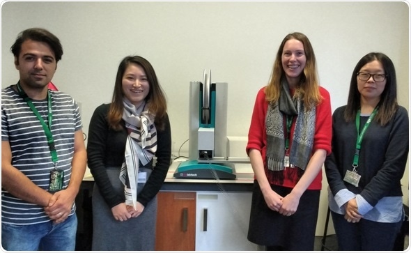 Some of the team at the Ferrier Research Institute and their new mosquito automated liquid handling system from SPT Labtech.