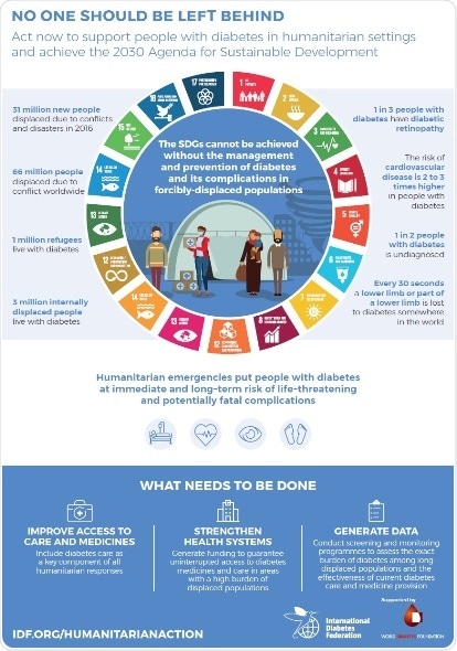 - Guarantee uninterrupted access to diabetes medication and care for all forcibly-displaced people with diabetes and integrate diabetes care as a key component of the humanitarian response