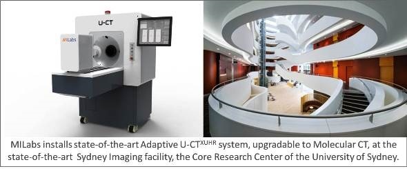 MILabs announces that it has successfully completed the installation of its next-generation Adaptive U-CTXUHR at Sydney Imaging, a Core Research Facility of the University of Sydney. Recognizing that excellence in research is increasingly linked to excellence in infrastructure capability, Sydney Imaging selected MILabs X-ray CT system for its unprecedented dose-efficiency for in vivo imaging of a wide variety of in vivo animal models of human diseases, from mice to rabbits. The system offers a unique combination of very low-dose, fast and high-resolution diagnostic X-ray CT and can, at any time, be upgraded to molecular CT imaging.