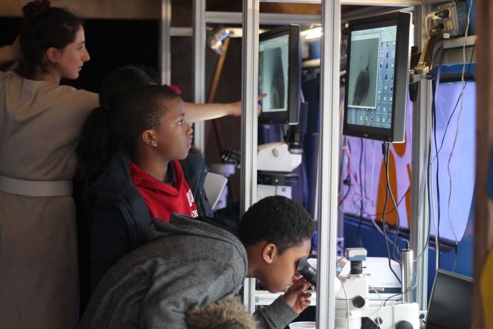 The mobile labs, equipped with Olympus microscopes, various specimens and artifacts, and staffed by scientists, visit pre-K through 12th -grade classes for inquiry-based, hands-on, standards-aligned lab sessions. These targeted interventions nurture interest and foster science identity in underserved populations where science achievement gaps are large. BioBus has reached a quarter-million students in the past decade and plans to reach another 750,000 in the next ten years.