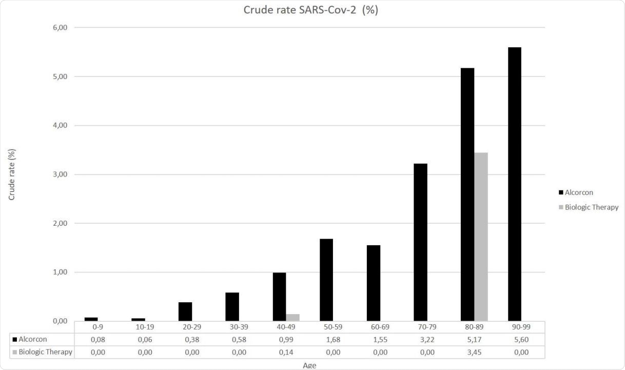 "This finding is reinforced by the fact that the mean age in the cohort with biological therapy is 10 years older than the mean age in the general population, and it is known that age is the most important risk factor for developing a severe form of the disease", further emphasize study authors in their medRxiv paper.
