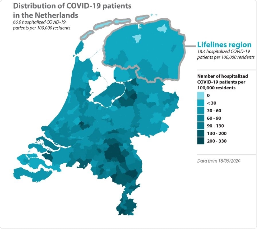 However, the same trends were not observed for the three northern provinces Drenthe, Friesland, and Groningen. The number of infections, hospitalizations, and deaths across the three regions over the same period was 1,491; 320 and 122, respectively.