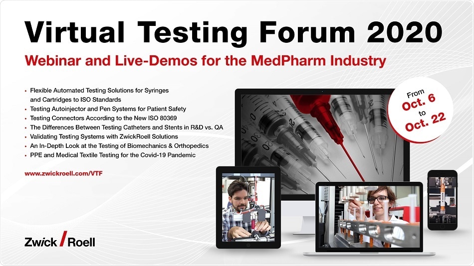 From October 6 through October 22, ZwickRoell will offer online events for the med/pharm industry as well as for academia and R&D.