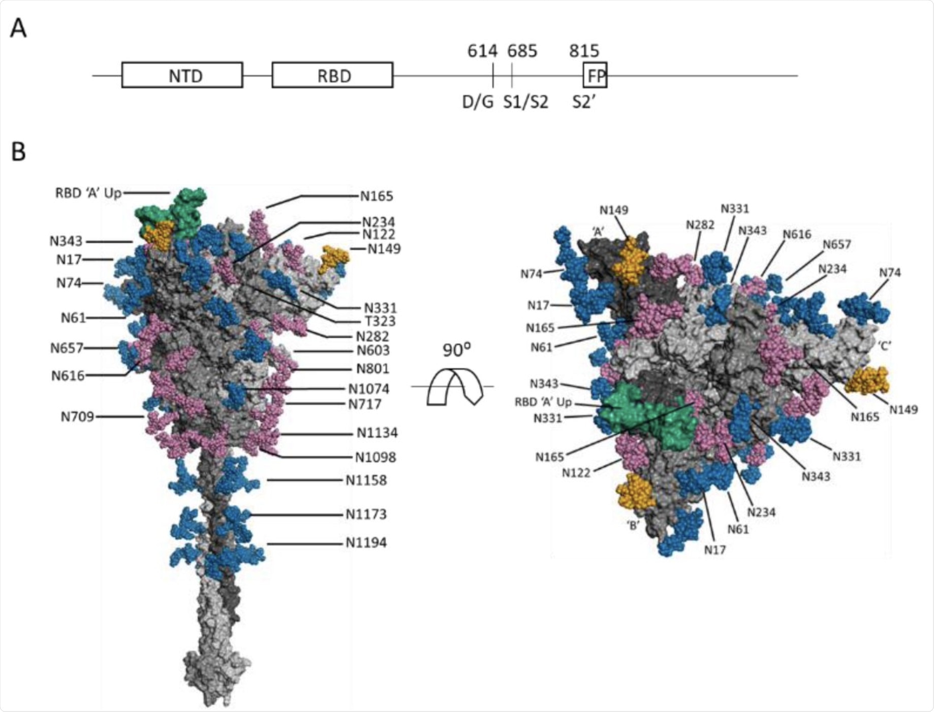 A new study published on the preprint server bioRxiv* has characterized and compared the N-glycosylation of the wild type (S-614D) and variant (S-614G) of SARS-CoV-2 S glycoproteins using MS techniques.