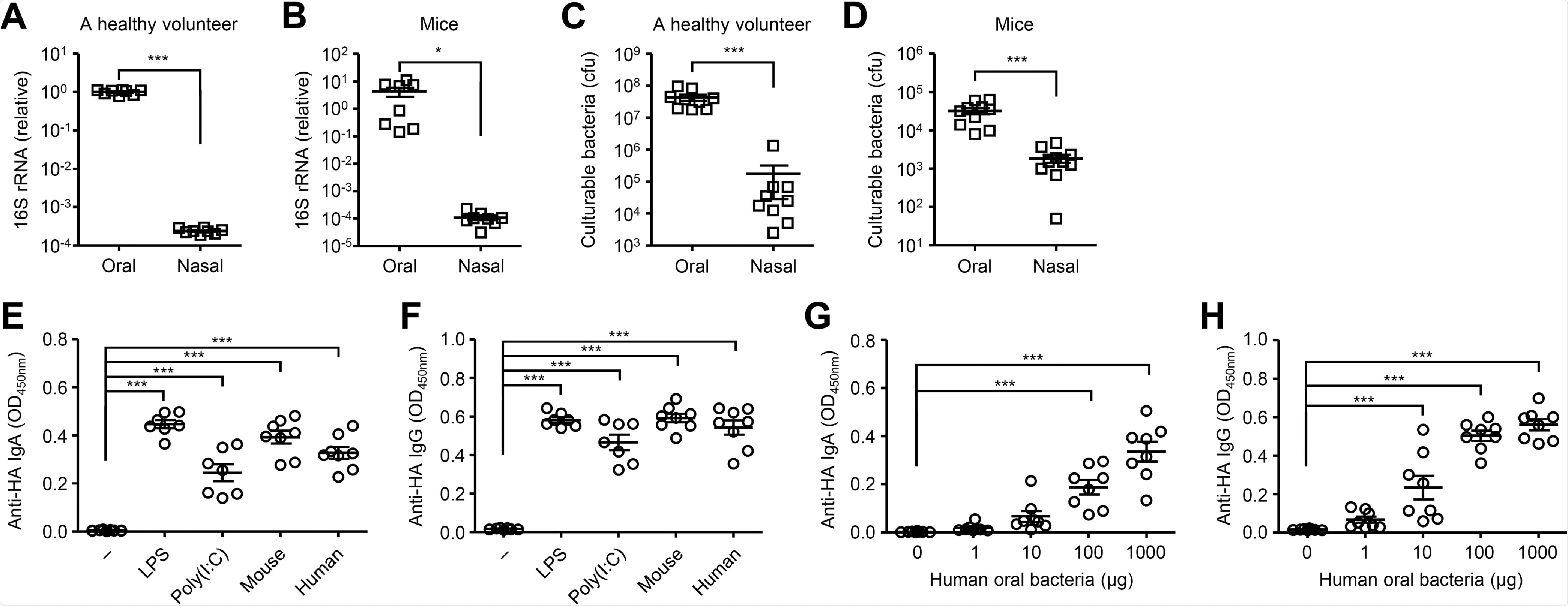 The researchers evaluated various bacterial strains that elicited comparable levels of the HA-specific nasal IgA and serum IgG responses. This result suggests that the ability of oral bacteria to act as adjuvants is not strain-specific.