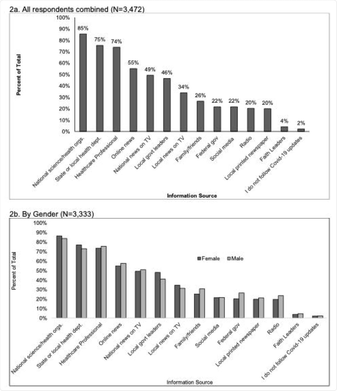 While more women tended to believe local officials and health departments, more men received their trusted information from family, friends, or national leaders.