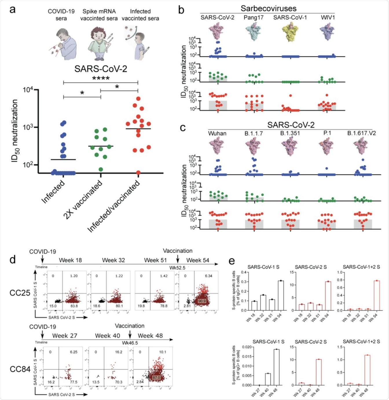 In the current study, the researchers identified and described 40 bnAbs from two convalescent sera taken from two COVID-19 donors (CC25 and CC84) who later obtained vaccination with mRNA vaccines. These individuals showed the highest levels of nAbs, as well as the highest levels of nAbs with neutralizing activity against multiple Sarbecoviruses that engaged the human angiotensin-converting enzyme 2 (ACE2) receptor. These include SARS-CoV-1 and WIV1, as well as the B.1.1.7 (Alpha), B.1.351 (Beta), P.1 (Gamma), and B.1.617.V2 (Delta) VOCs of SARS-CoV-2.