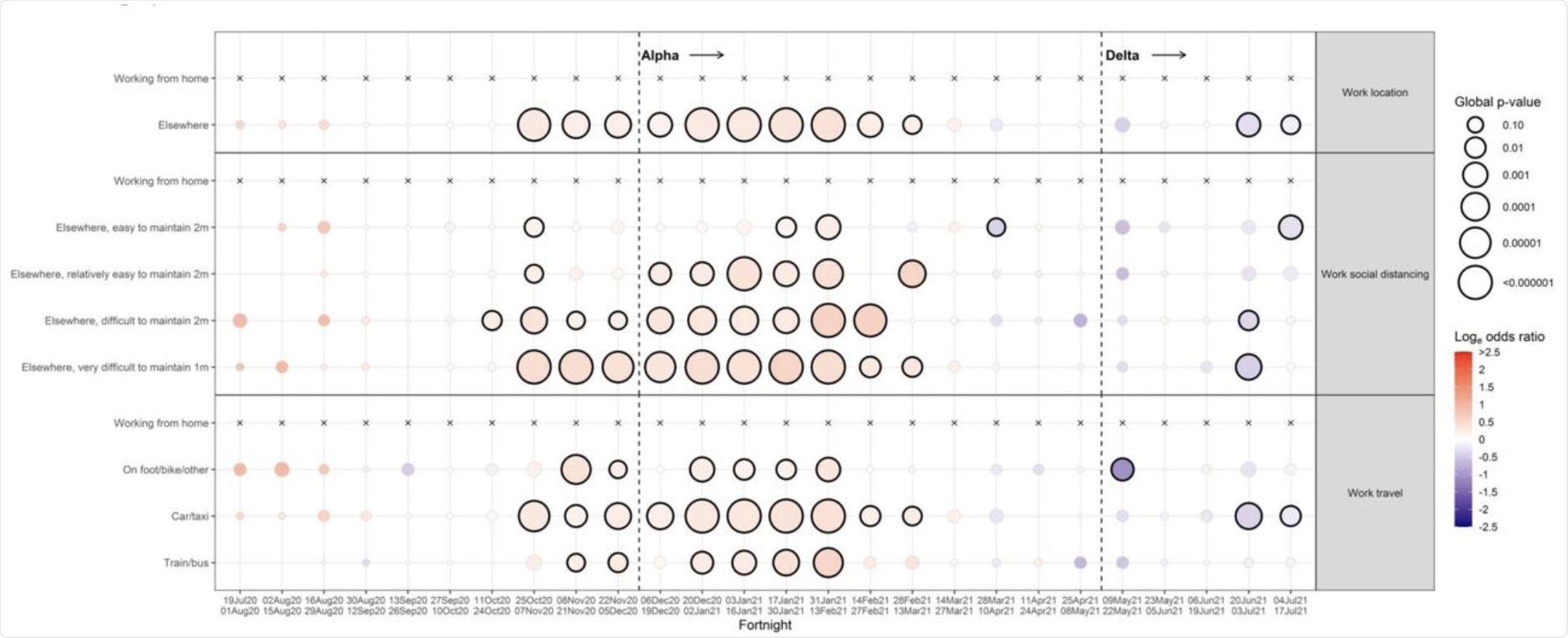 Employment, especially within care homes and healthcare facilities, also showed a significant association with positive COVID-19 results, while information technology (IT) workers had consistently lower odds. Those traveling to work showed a greater risk than those working from home. However, in an unexpected turn, those traveling by train or bus were less likely to contract the disease than people traveling by car or taxi.