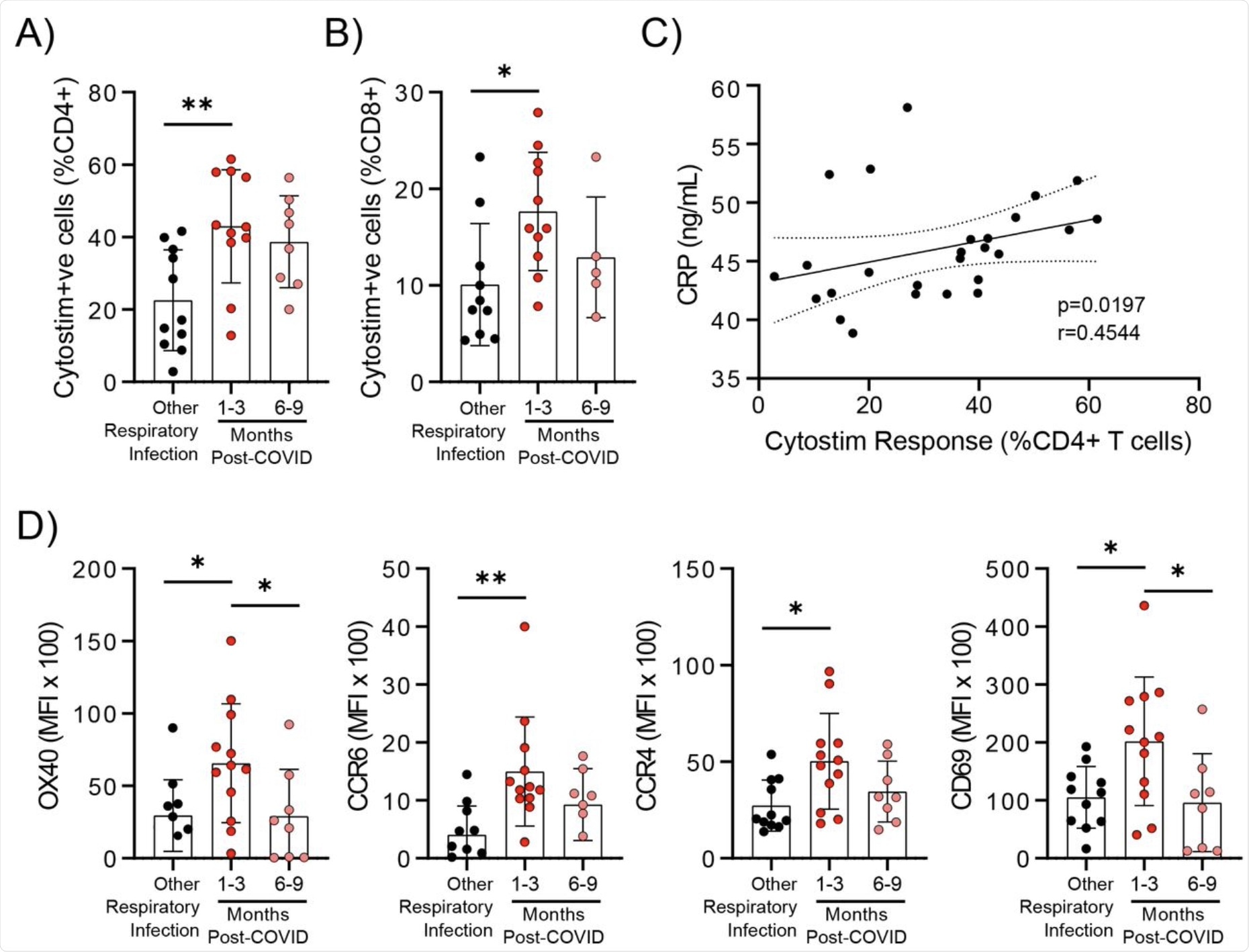 For the first time, non-specific T-cells were activated by Cytostim stimulation in patients recovering from COVID-19. The activation markers were higher in stimulated cells following mild COVID-19 than in the other respiratory infection group, with some remaining high at 6-9 months.