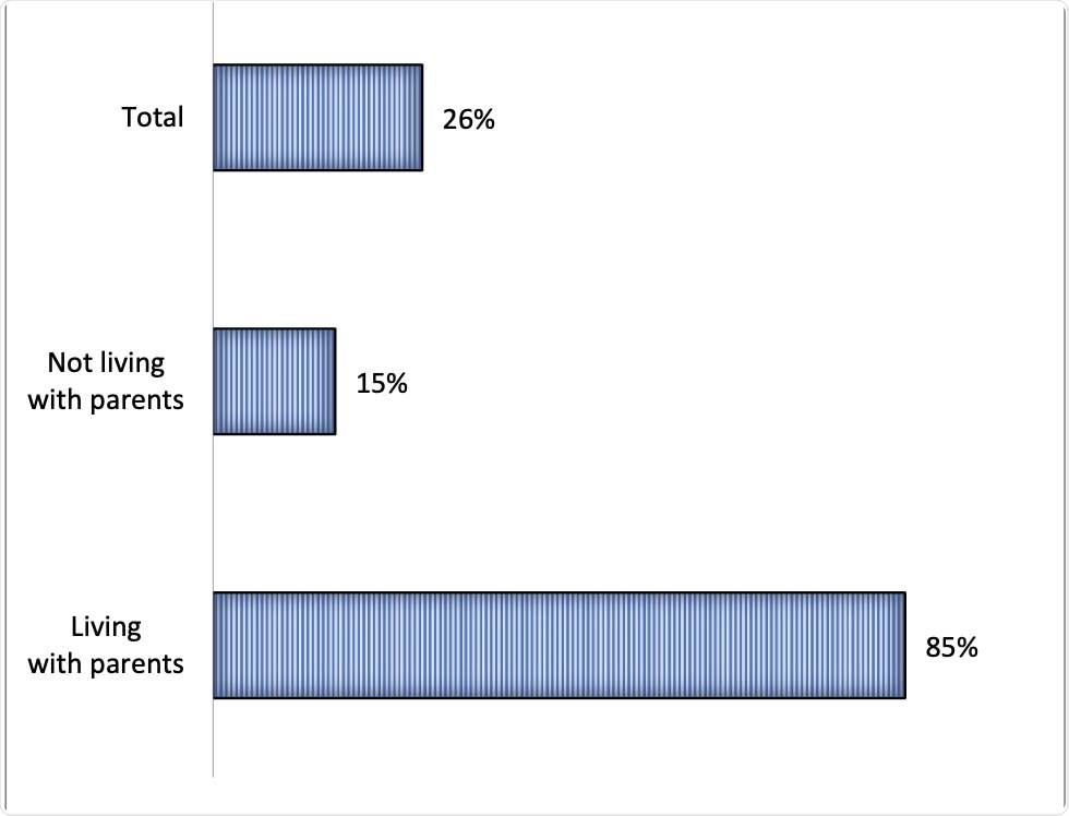 Percentages of youth been COVID tested, stratified by living with and without parents.