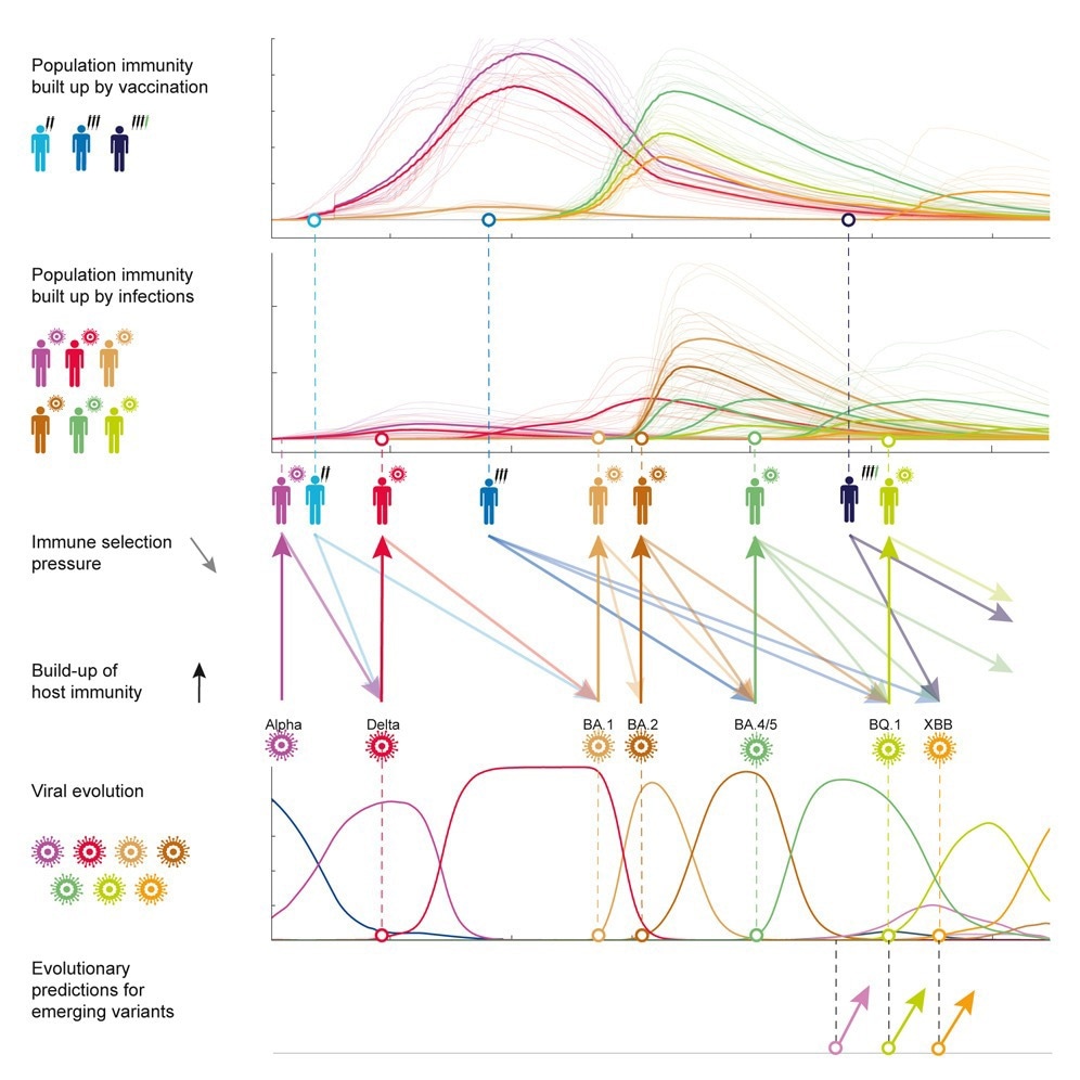 The study delved into the antigenic evolution of SARS-CoV-2 by utilizing cross-immunity data among different variants, establishing a cross-immunity matrix through neutralization assays, and observed that the highest immunity was present within the same variants, gradually declining with the emergence of new strains. They mapped immunity trajectories by integrating data on immunization timing, infection rates, and vaccinations.
