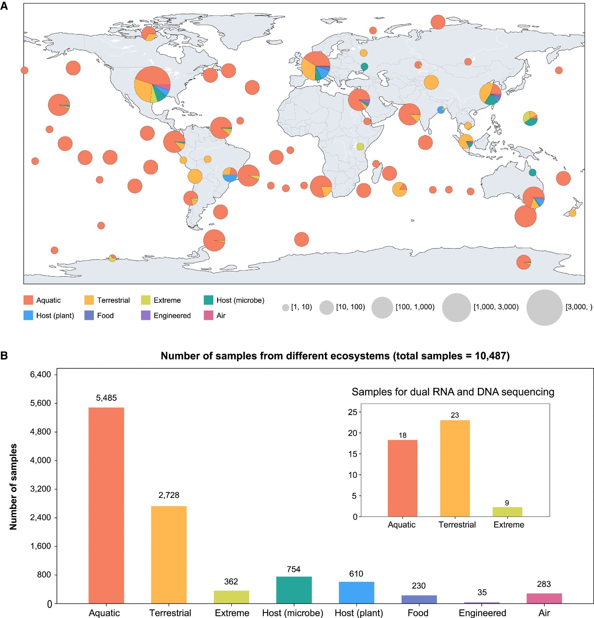 Widespread virus presence was revealed across 32 ecosystem subtypes and 1,612 locations, with 33.3% of groups identified by LucaProt being previously unreported. Alpha diversity, a measure of species diversity within an ecosystem, was highest in environments like leaf litter, while viral abundance peaked in Antarctic sediment and marine environments.