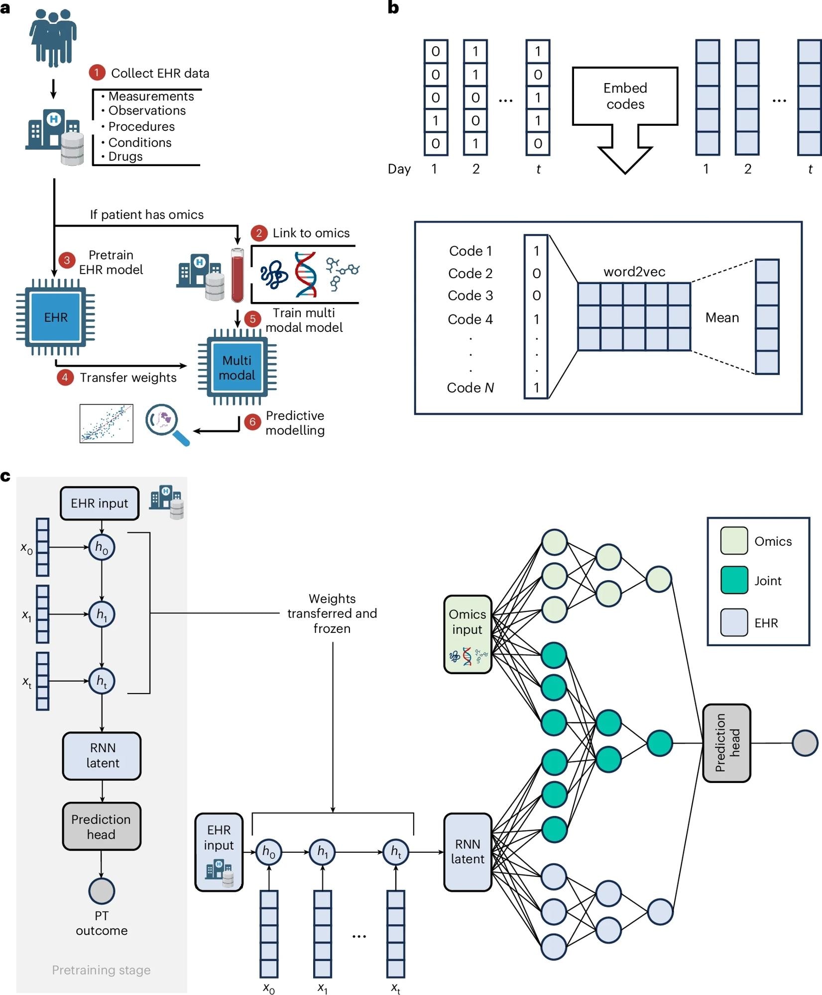 In the present study, researchers introduced COMET, a deep learning and transfer learning protocol that improves omics analyses. COMET could be applied when electronic health records (EHR) and omics data are available for a larger and smaller cohort. COMET comprises a method to embed longitudinal EHR data, pre-training, and multimodal modeling.