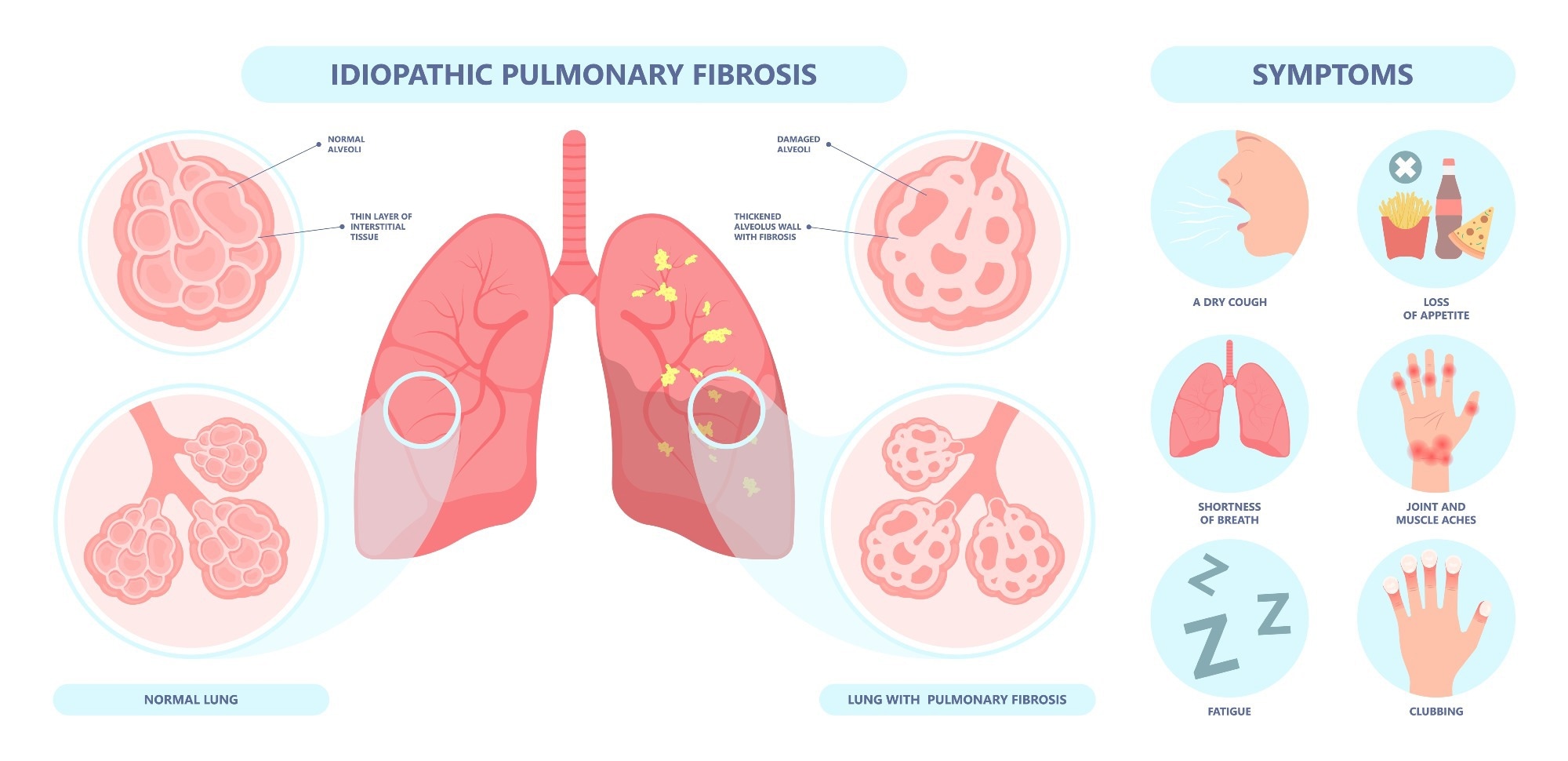 Idiopathic pulmonary fibrosis (IPF) is a chronic, progressive, age-associated lung disease. It is characterized by the irreversible scarring and thickening of the lung tissue, resulting in death by respiratory failure.