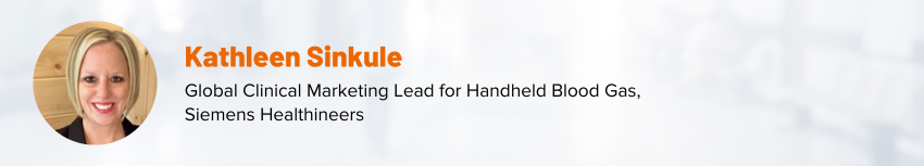 Kathleen Sinkule is a registered respiratory therapist and is currently the global clinical marketing lead for blood gas at Siemens-Healthineers. Before her time at Siemens Healthineers, Kathleen worked for 25 years in several large metro Atlanta hospitals. Kathleen spent most of this time as a neonatal intensive care coordinator and system respiratory educator. In 2020, Kathleen transitioned her career to industry when she joined the Siemens Healthineers team as a clinical sales specialist.