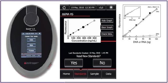 In such situations, fluorescence-based quantification provides an ideal solution. The benefits offered by the Qubit 2.0® and Bioanalyzer 2100© are evident with regard to their sensitivity and sizing ability.