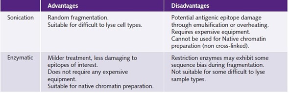 Table 1 shows the advantages and disadvantages of the two different techniques used in chromatin preparation.