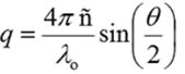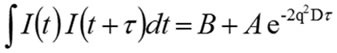 In case of monodisperse samples containing one group of particle size, it is possible to accommodate the correlation curve into a single exponential form as specified in the expression shown below, where A is the amplitude, B is the baseline, and D is the diffusion coefficient. The scattering vector (q) is described by the second expression, where λ0 is the vacuum wavelength of the laser, ñ is the solvent refractive index and θ is the scattering angle.