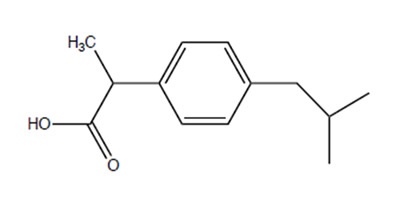 Ibuprofen (C13H18O2), previously named (RS)-2-(4-(2-methylpropyl)phenyl)propanoic acid, contains the molecular fragments propionic, iso-butyl and phenyl.