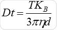 Particle movement is obtained on a frame-by-frame basis. The center of each observed particle is concurrently determined and monitored using the proprietary NTA software and the average distance traversed by each individual particle in the x and y planes is ascertained. Using this value, the particle diffusion coefficient (Dt) is obtained. From the Dt value obtained and with known temperature T and solvent viscosity η, it is possible to obtain the sphere equivalent hydrodynamic diameter d of the particles with the Stokes-Einstein equation (Equation 1), where KB is Boltzmann’s constant.