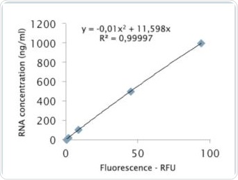 The Eppendorf BioSpectrometer fluorescence is compatible with the RNA detection kits from Life Technologies and Promega. Based on the sample analyses conducted on the Life Technologies kit, it may be concluded that standard curve can be produced by both quadratic and linear regression. In case of the Promega RNA kit, the analysis results of the linear regression or the standard curve exhibited substantial deviation from the nominal value.