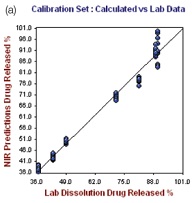 NIRS measures absorption in the NIR region, which is between the mid-infrared and visible regions of the electromagnetic spectrum. The functional groups’ fundamental absorption bands are very strong and appear in the mid-infrared. The absorbances can be brought within the mid-IR detector’s linear range with KBr pellets, dilutions, or mulls. However, these fundamental bands have overtone absorptions in the NIR spectral region, thus allowing direct measurement with no sample preparation because the absorption is relatively weak. In the NIR region, the SH, NH, CH, and OH bonds exhibit the strongest overtone absorbances. Several researchers have evaluated NIR for determining dissolution profiles as part of QbD and PAT “to corroborate the quality of the product so that it can be readily available for subsequent processes”.