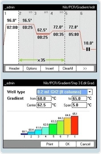 Figure 1. PCR program of the temperature gradient run for determination of a suitable annealing temperature. A screenshot for gradient programming in the Mastercycler nexus GX2 software is shown below.
