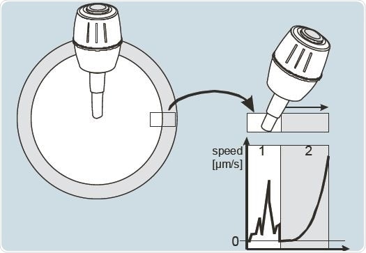 TransferMan 4m’s DualSpeed joystick can be declutched to reposition if maximum displacement of the path’s actual radius has been achieved. This feature is used to move the needle carefully in the fine or extra fine speed mode, while it is still able to do a quick motion range on entry into the joystick’s dynamic outer zone (Figure 6).